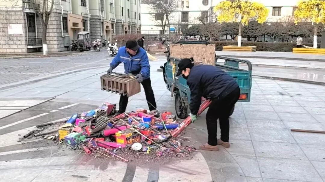 春节期间,人们用鞭炮炸裂的响声和飞上天际的绚烂礼花表达对生活的美好祝愿和期待,“噼里啪啦”的鞭炮声响过后,小区里散落的彩色炮仗在表达期许的同时也给园区里的保洁员们增加了不小的工作量。随着响彻了大半夜的炮声逐渐平息,每天早上,物业公司的保洁员就已进入了工作岗位,“刷拉刷拉”的清扫声为红红火火的新生活添加了一抹温馨和整洁,这样的工作量和工作节奏会持续整个正月。